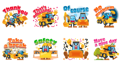 世界的な重機メーカー、キャタピラー(CAT)の公式キャラクター「ケンキ三兄弟」の待望のスタンプ第4弾!油圧ショベルやブルドーザーなど、パワフルな建設機械をモチーフにした愛らしいキャラクターが、現場の活気とユーモアをトークルームに届けます。